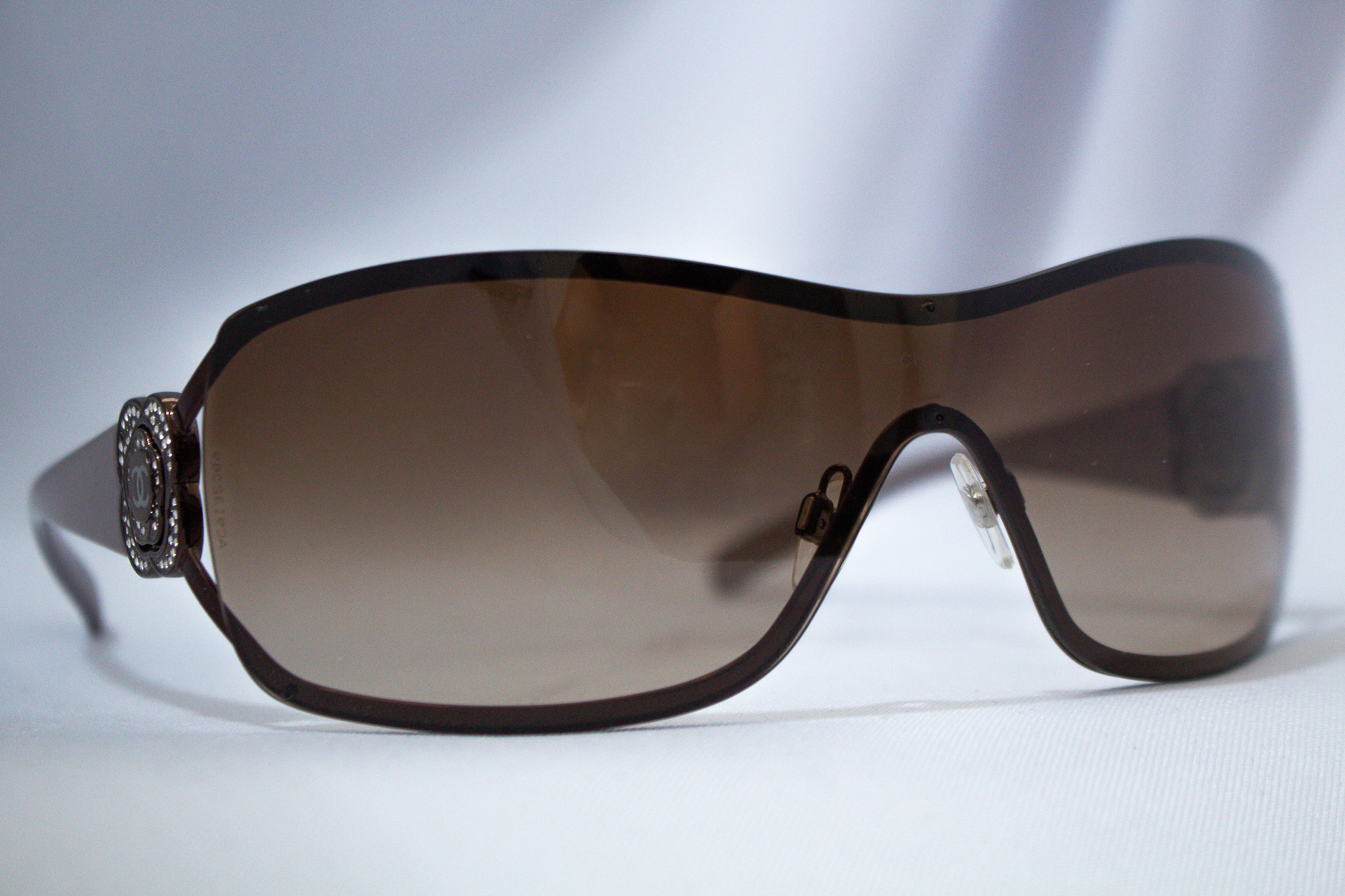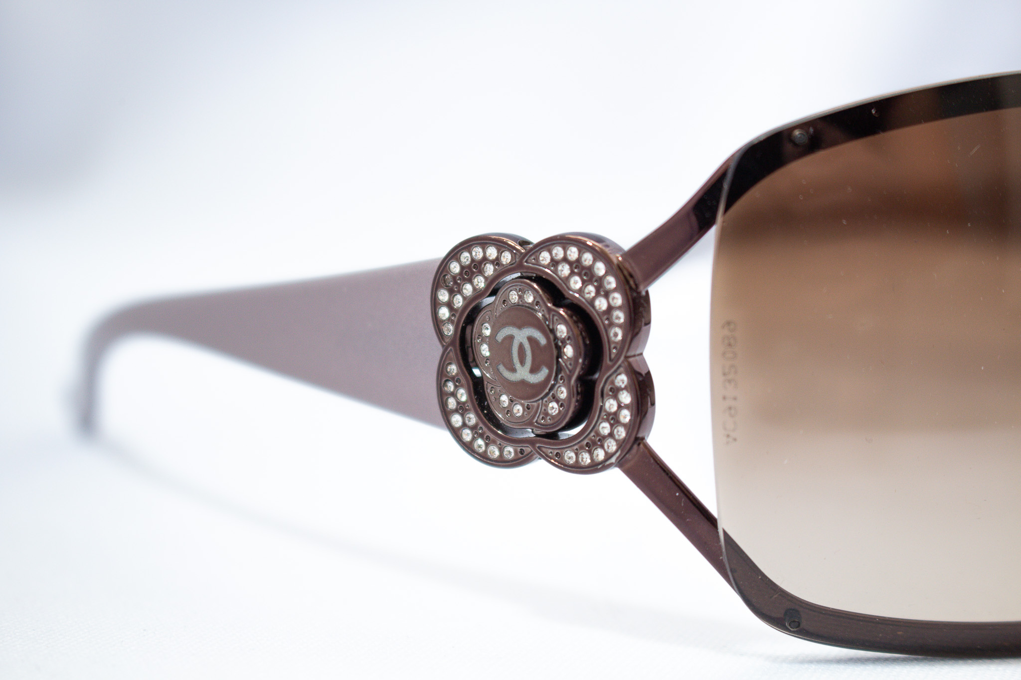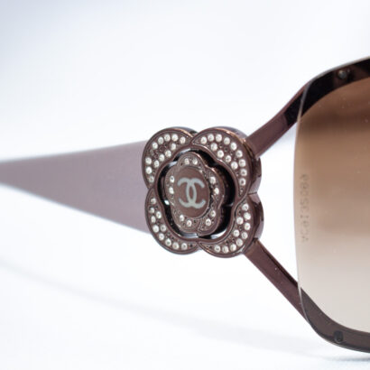 Detalles icónicos de Chanel en las patillas, con acabado brillante