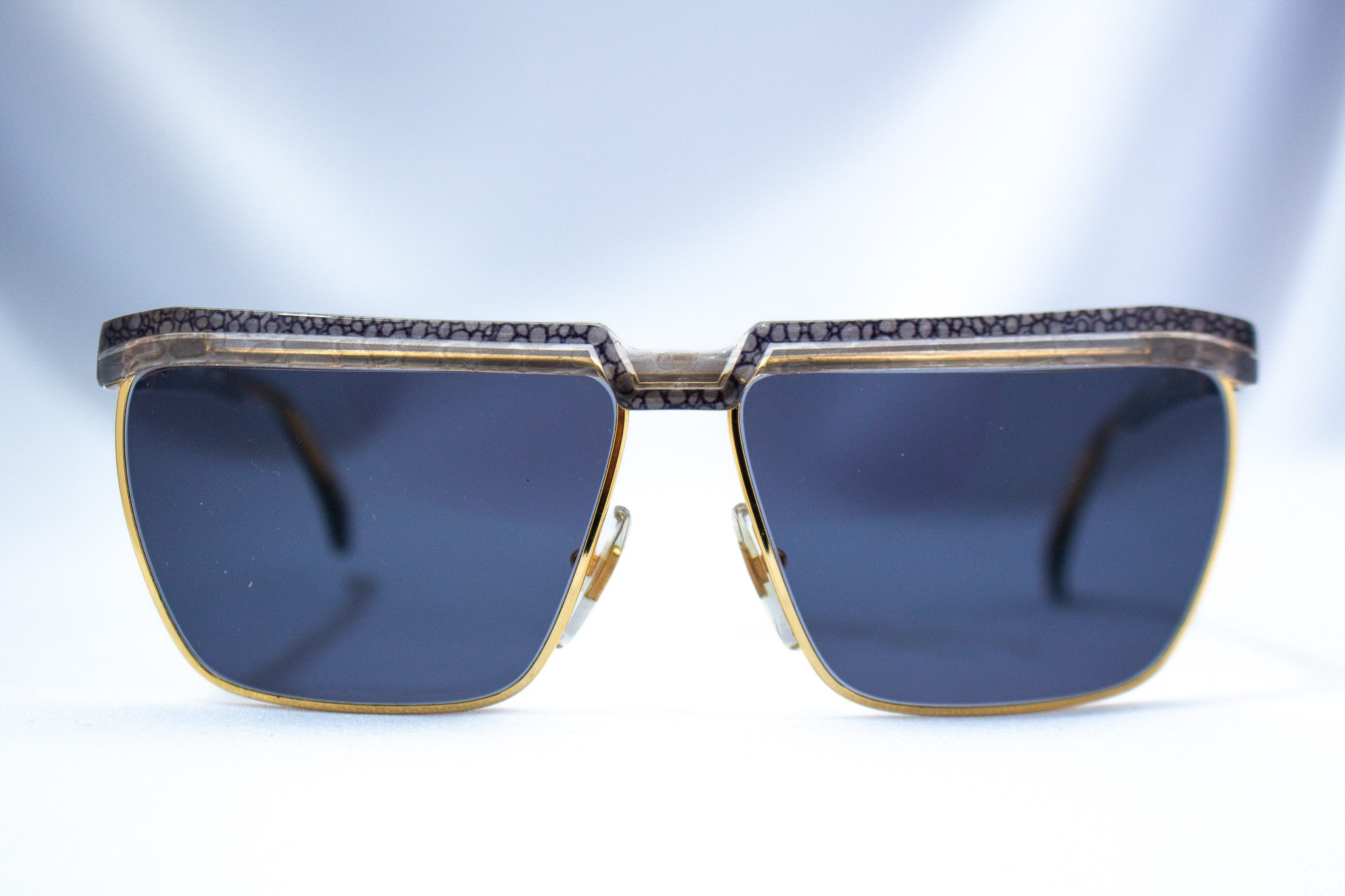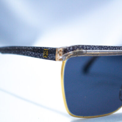 Lo que distingue a este modelo es su lente con tratamiento antirreflejante en la cara externa, una innovación poco común en la época, que no solo mejora la claridad visual sino que también reduce el deslumbramiento, proporcionando una experiencia óptica superior. Al portar estas gafas, no solo llevas un accesorio de moda, sino también una pieza de la historia del diseño italiano, reflejando una era de opulencia y atención al detalle.
